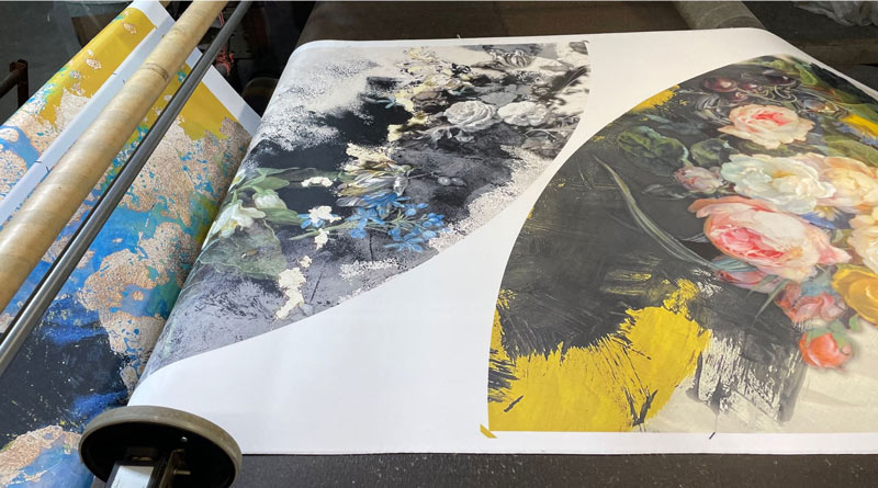 They had their custom designs printed onto fabric, then glue bonded to a backing fabric to stiffen and create stability to give these amazing lamp shades structure.